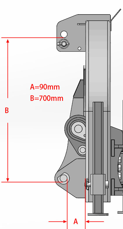 Abhängig vom zu häckselnden Gut können die technischen Anforderungen an den Mulcher vielfältig sein. Der Bowell BCRXpro-Seitenmulcher verfügt daher über eine Nachlaufwalze, die in zwei verschiedenen Positionen montiert werden kann. Wird das Material vor die Walze gelegt und dann von ihr überfahren, wird es komprimiert, was wenn es anschliessend mit Kreiselegge oder Bodenfräse eingearbeitet wird unerheblich ist. Wird das Material jedoch hinter die Nachlaufwalze gelegt - also nicht komprimiert - verrottet es schneller und es gelangt mehr Licht und Luft an die Wiese darunter. Auf unebenen Flächen kann ein geringer Abstand der Nachlaufwalze zur Rotorwelle für die Bodenanpassung von Vorteil sein. Das Häckselgut wird dann hinter der Stützwalze abgelegt. Dies kann aber bei trockenem Häckselgut wie z.B. Maisstroh zu einer starken Aufwirbelung führen. Der Bowell BCRXpro Böschungsmulcher bietet die Möglichkeit die Nachlaufwalze oder Stützwalze um 20 cm weiter nach hinten zu versetzen. So wird das Häckselgut vor der Walze abgelegt. Durch die Veränderung der Stützwalzenposition kann sich der BCRXpro-Seitenmulcher bestens den unterschiedlichen Bedingungen anpassen. Für die Anpassung der Mähhöhe gibt es für die Stützwalze drei Positionen.