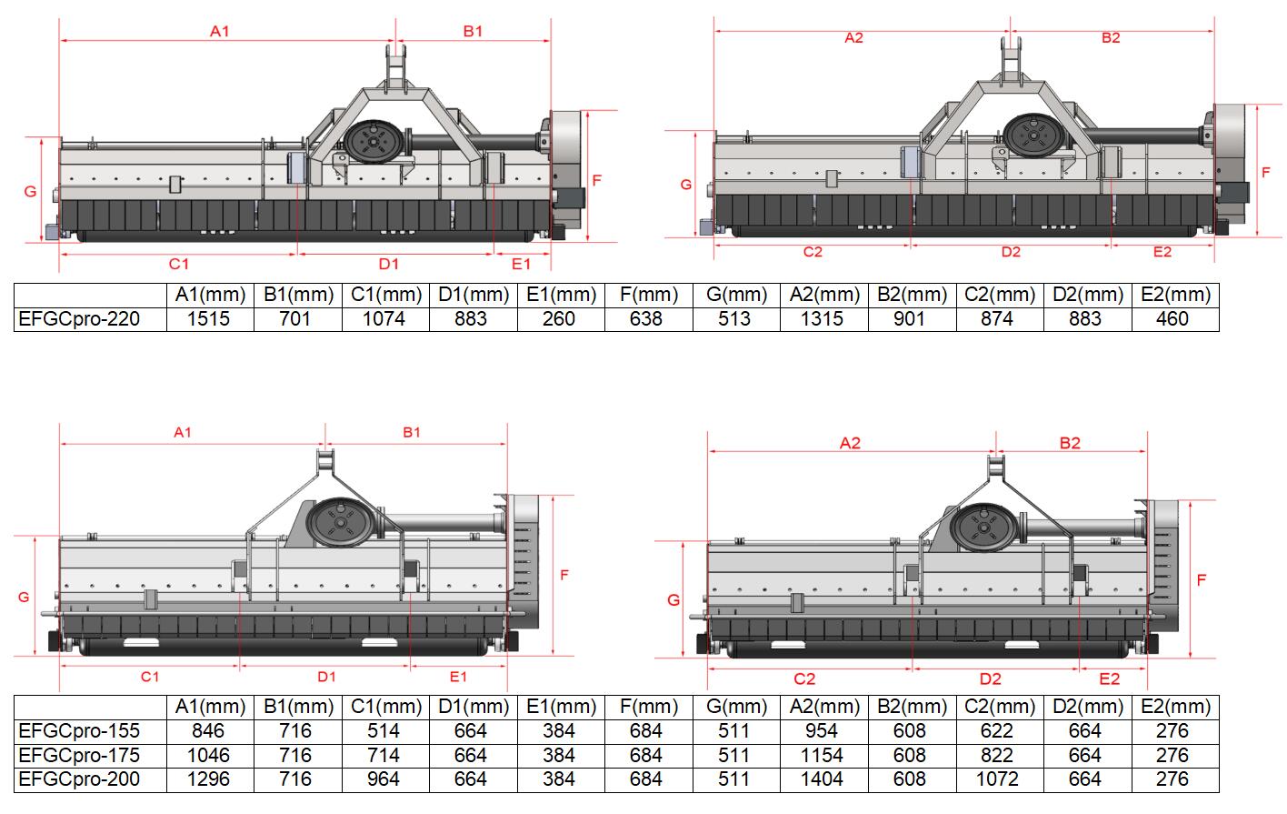 EFGCpro-Serie - professioneller mittelschwerer Schlegelmulcher - Mähwerk für Arbeitsbreiten zwischen 155 cm und 220 cm