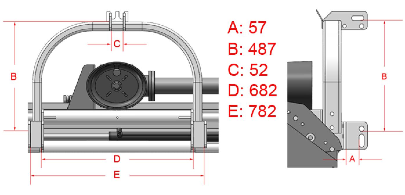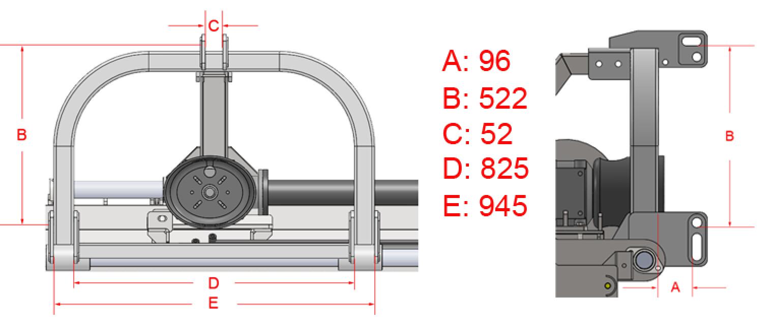 Mit der schweren, kugelgelagerten, selbstreinigenden Nachlaufwalze wird die Schnitthöhe zwischen 20 und 75 mm eingestellt. Die höhenverstellbaren seitlichen Kufen am Schlegelmulcher verhindern, dass das Mähwerk bei Bodenwellen in den Boden mäht. Eine Stütze an der Vorderseite sorgt für Stabilität bei der Lagerung der Geräte.