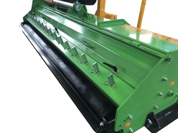Je nach Arbeitsbreite sind die MXZ / MXZpro Mulcher mit 16 bis 20 der breiten und schweren, speziell geformten 1500 g Bowell Hochleistungs-Schlegel ausgestattet, die auch bei hartnäckigem Unterholz, Buschwerk und Restholz bis 50 mm Durchmesser für ein optimales Mähergebnis sorgen. Die neu entwickelten Gegenschneiden im Inneren des Gehäuses des hydraulisch seitenverschiebbaren Mulchers verbessern die Zerkleinerung entscheidend. Mit der schweren, selbstreinigenden Nachlaufwalze wird die Schnitthöhe eingestellt. Dies verhindert, dass der Mulcher bei Bodenwellen in den Boden mäht.