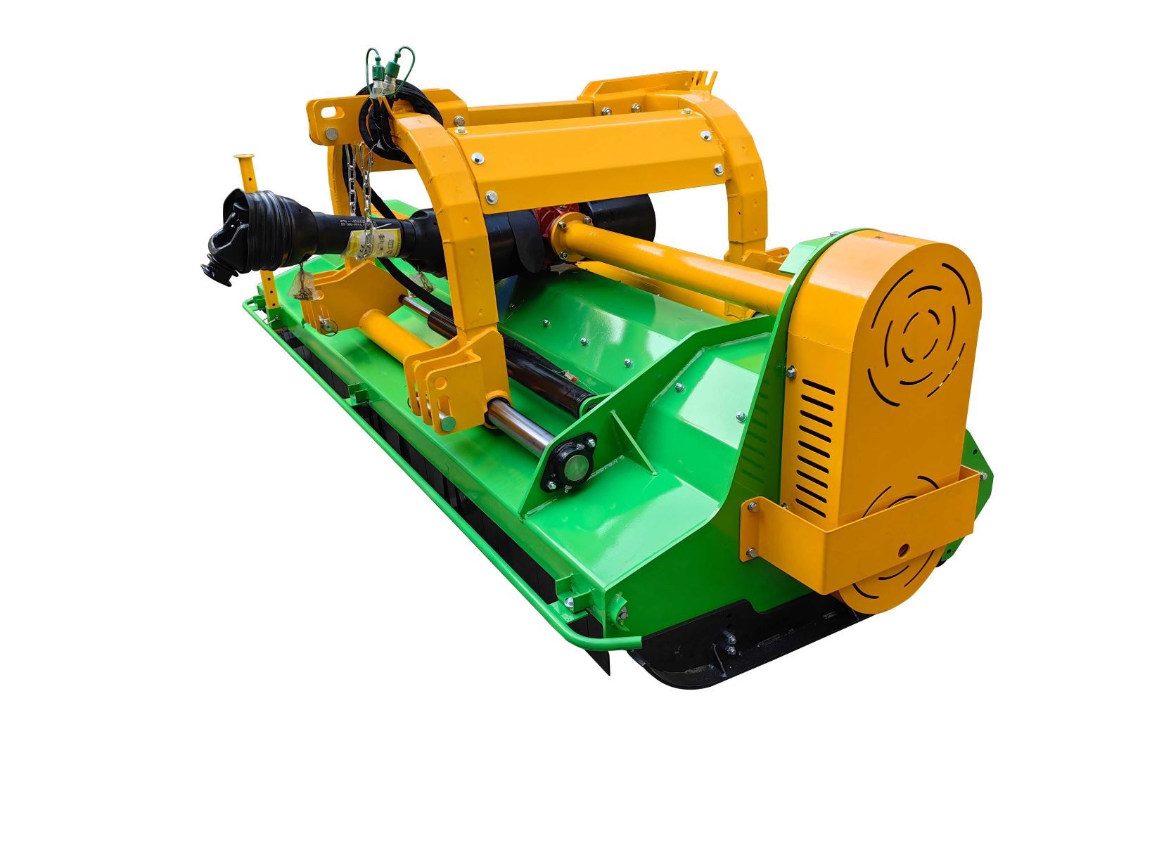 Schwerer, professioneller Front-Heck-Schlegelmäher mit hydraulischer Seitenverschiebung für größere Traktoren zwischen 90 und 200 PS mit Kat. 2 und Kat. 3 Dreipunktaufhängung