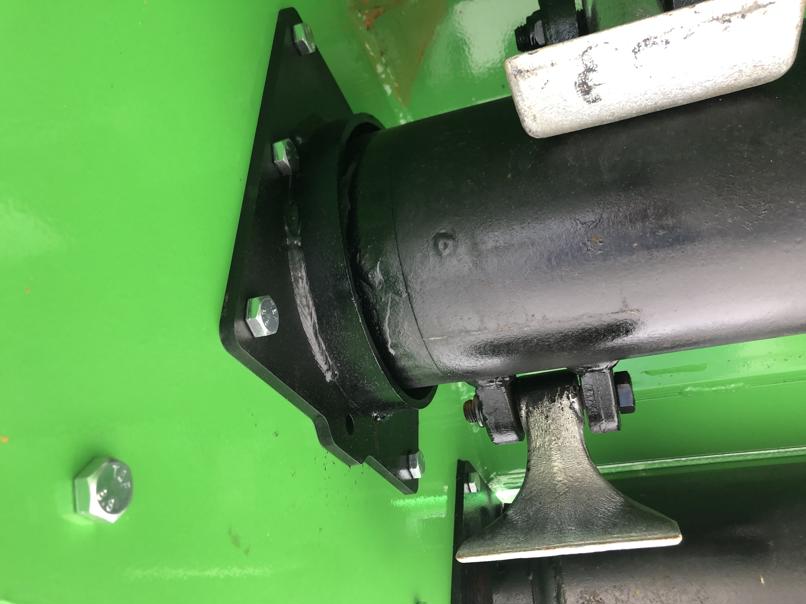 Die BCX Schlegelmäher sind mit großen SKF Rotorwellen-Kugellagern ausgestattet, die in massiven CNC-gefrästen Lagersitzen verankert sind. Das ist auch erforderlich, da sich die schwere lasergewuchtete Rotorwelle mit 2350 U/min dreht und so das Schnittgut bis auf ein Minimum zerkleinert, damit es schnell verrotten kann. Die Rotorwelle ist speziell optimiert. Die Schlegel sind spiralförmig angeordnet, so daß nie mehr als zwei Schlegel trotz der hohen Arbeitsbreite gleichzeitig das Gras schneiden. Dadurch verringert sich der Kraftaufwand erheblich.