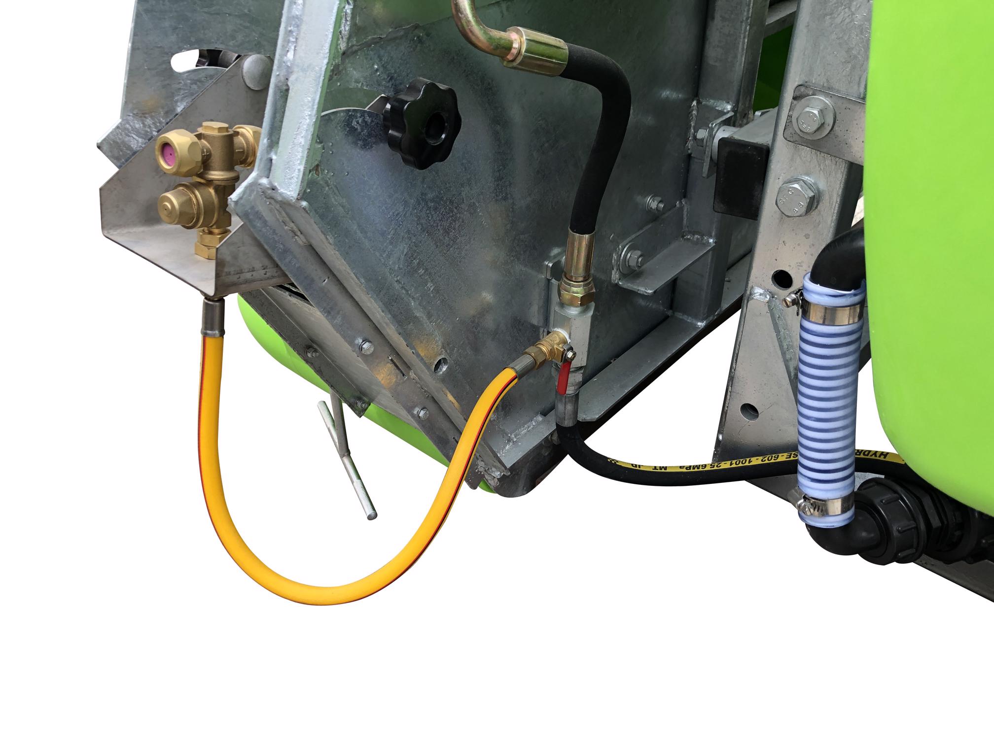 Die Druckregelanlage ist mit einem Manometer und 3 Regelventilen ausgestattet. Die linke und rechte Düsenseite kann einzeln abgeschaltet werden.